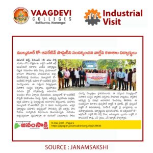 Vaagdevi College of Engineering (Autonomous), Bollikunta, Warangal, successfully organized an Industrial Visit to Mulukanoor Co-operative Rural Credit and Marketing Society Limited and Mulukanoor Women’s Cooperative Dairy for MBA I Year students on 15 December 2025.